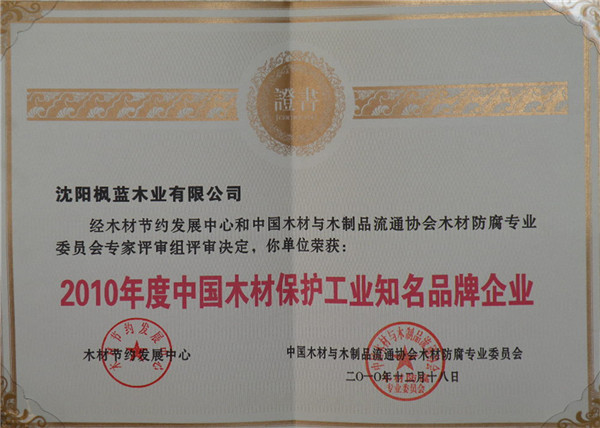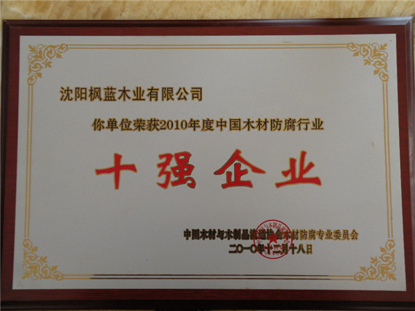 根據(jù)木材節(jié)約發(fā)展中心與中國木材與木制品流通協(xié)會木材防腐專業(yè)委員會聯(lián)合印發(fā)的《關(guān)于組織開展木材保護行業(yè)典型示范活動的通知》(木節(jié)字〔2010〕24號)的要求,由木材節(jié)約發(fā)展中心和中國木材與木制品流通協(xié)會木材防腐專業(yè)委員會組織評審,確定了2010年度全國木材保護行業(yè)典型示范名單。我公司被授予“2010年度中國木材保護工業(yè)知名品牌企業(yè)”與“2010年度中國木材防腐行業(yè)10強企業(yè)”稱號!